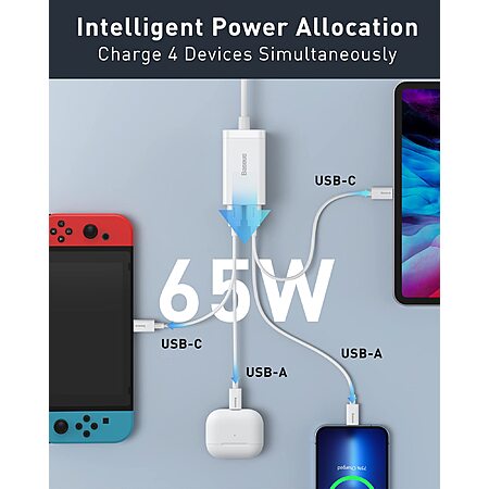 Prime Members: Baseus 65W PD GaN3 4-Port Charging Station + 3.3ft 100W USB C to USB C Cable $24.99 + Free Shipping