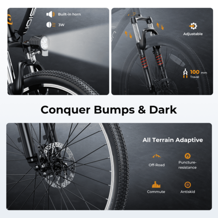 | Product Description: | Heybike Electric bikes amplify your pedaling power and your ability to do and see more. Heybike e-bikes make more possible. They're quick and smooth, with predictable, easy-to-control power and a long-lasting removable battery that recharges at any household outlet. It gets you outside, reduces fossil fuels, reduces congestion, and it's fun. With the 26" electric bike, you can do it all. With a 350W stable brushless motor, this electric bike has a longer life and faster starting speed, empowering each with more speed, more freedom, and more fun. compact bike for easy storage and portability, you can have a cycling trip anytime. Bike riding is an increasingly popular cycling workout. with 36V/10Ah Li-ion battery, flash charge 4-5h, you can get 25-40Miles (with pedal assist)/20MPH extremely long mileage. Whether you’re looking for a faster commute, a more effective workout, or enhanced weekend riding thrills, the Adult e-bike with a reasonable charge delivers on all fronts. CUSTOMER SERVICE -Adult electric bicycle arrives 90% assembled, only the front wheel, handlebars, and pedals have to be assembled. You can also contact us for an installation video. If there is any problem with it, please feel free to tell us, and we will reply to you within 24 hours. Powerful Motor: The EB5 electric bike is equipped with a 350W brushless motor, boosted a top speed of 20 MPH, which provides great hill climbing ability and smooth acceleration. Power your daily commute, mountain cruising or meandering along your favourite trails. Removable Large Battery: This adult ebike is equipped with 360WH lithium-ion battery, which covers a range of up to 25-40 miles per charge for 5-6 hours so that it can meet travel or daily commute needs. Removable battery makes charging more convenient whether you are at home or in the office. 4 Riding Modes: PAS mode will assist you with a moderate amount of power as you pedal the bike, kick in 1-3 levels of pedal assist to suit your needs. In pure electric mode, you can twist the throttle in any increments of power you desire. Pedal mode allows the rider to pedal as an ordinary bike. Booster mode will help you push your EB5 at 4.5-7.5 km/h when uphill, which will save you a lot of efforts. Riding Comfortably: The 26" puncture resistant tires are for greater durability. A high-strength front fork suspension, 7-speed gears, headlight, LCD display, front and rear mechanical disc brakes can take your riding more comfort, make your mountain e-bike adapted to complex road conditions and keep you safe. Lightweight Frame: A highly efficient, city style affordable electric bicycle offering minimalist and sleek appearance and only weighs 49.6 lbs. The triangular high-carbon steel frame provides more stability. 🚴Ebike Specification: Motor: 350W Brushless Motor Battery: 36V 10Ah Removable Battery (UL 2849 Certification) Suspension: Front suspension Frame Material: Carbon Steel Maximum Speed: 20mph Tire: 26" x 1.95" Brake System: Dual Disc Brake Weight(Including Battery): 49.6 lbs Recommended Height: 5'4"-6'4" Load Capacity: Max 264lbs Suggested Use: Neighborhood, Urban, Commuting, Travel ⚠️IMPORTANT REMINDER: When placing an order, please go to the shopping cart to view the shipper. Please note that "Heybike Direct" is the only authorized store. All other sellers are scammers, and customers should beware of fraud. |