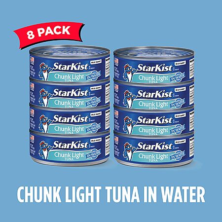 StarKist Chunk Light Tuna in Water, 5 oz (8 Pack) Canned Tuna Fish, Wild Caught, Gluten Free, Ready to Eat, Perfect for Salads, Keto Meals and Snacks~$6.33 @ Amazon