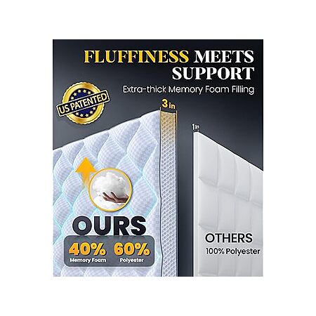 Milcabe Memory Foam Mattress Topper (Queen, White) $46.99 + Free Shipping w/ Prime