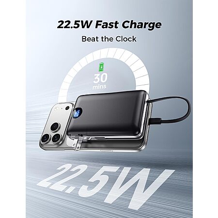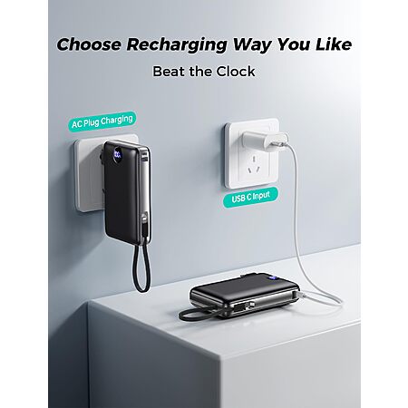 - 22.5W Fast Charging with Dual Input : Supports power bank fast charging with 22.5W output for quick energy boost. Recharge the portable power bank via the foldable plug-in wall charger or USB-C input. Whether you're in a rush to top off your phone before a meeting or need quick juice on the go, this power bank delivers rapid, stable output to compatible devices. Ideal for fast-paced lifestyles that demand constant connection and dependable power.