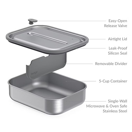 - What You Get: Patented Bentgo MicroSteel Leak-Proof Lunch Box with lid, removable divider, and caring customer support.