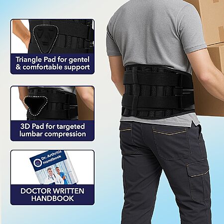 BACK BRACE FOR LOWER BACK: Achieve enduring relief from back pain and muscle soreness. Our doctor-developed lumbar back brace for men & women are crafted to support you through walking, bending, and stretching, delivering both comfort and stability.