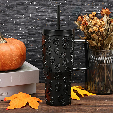 Way To Celebrate 30 Ounce Acrylic Double Wall Embossed Skull Tumbler with Straw and Handle $3.36