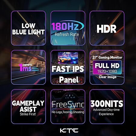 KTC Gaming Monitors: 27" 1080P 180Hz IPS Gaming Monitor $87.99 & More + Free Shipping
