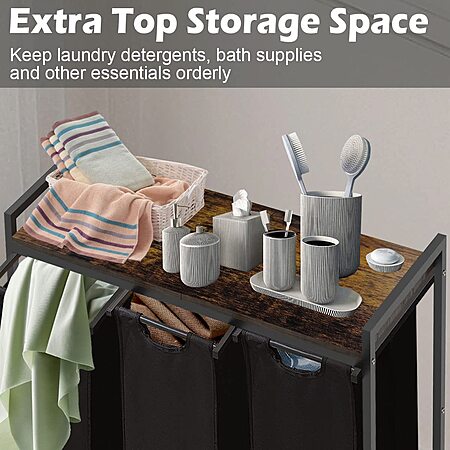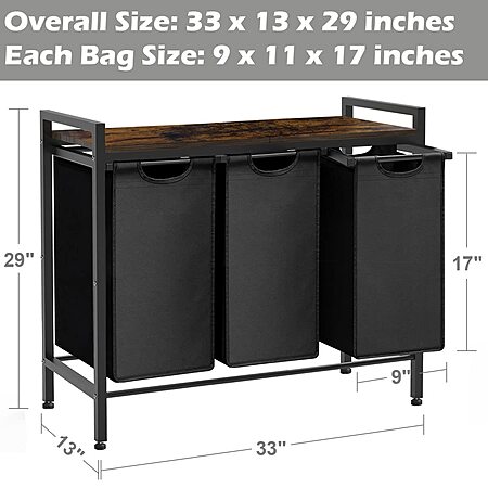 3-Bag 8-Gallon Laundry Hamper Sorter w/ Removable Pull-Out Bags & Wooden Top Shelf $26.39 + Free Shipping w/ Prime or on $35+