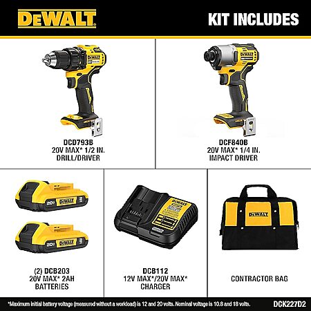 DeWALT 20V MAX 2-Tool Brushless Power Tool Combo Kit w/ Soft Case