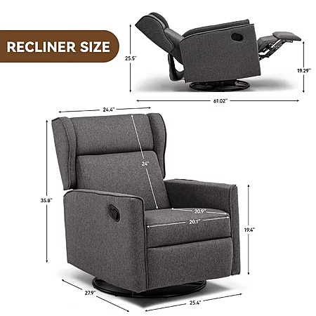 Comhoma 360° Swivel Rocker Recliner Nursery Sofa Chair (White or Dark Gray) $116.XX + Free Shipping