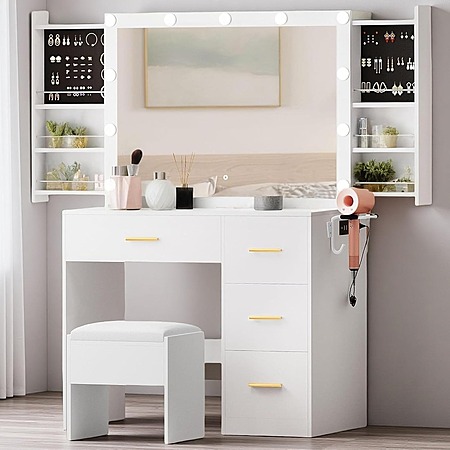 DWVO Vanity Table Set with Lighted Mirror and Stool $129.59 + Free Shipping