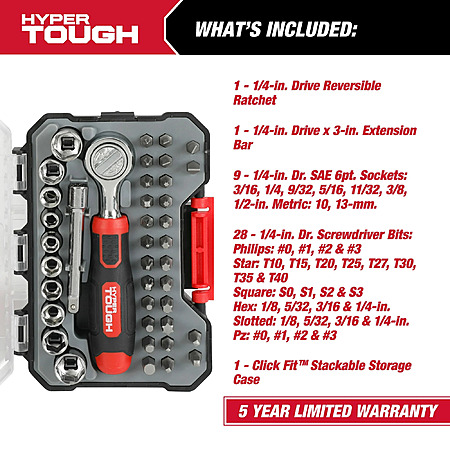 Model: Hyper Tough 40-Piece Socket and Bit Set in Click Fit Case