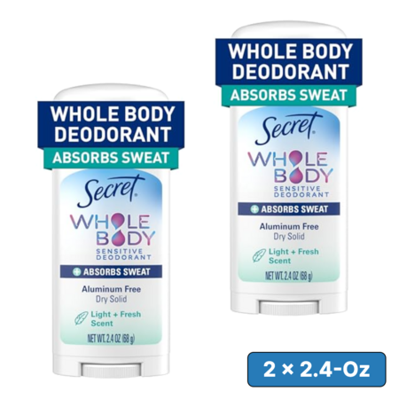 [S&S, AC] $11.89: 2 × 2.4-Oz Secret Whole Body Deodorant (Light and Fresh) ($5.95 each) at Amazon