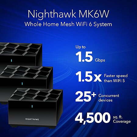 Netgear Nighthawk MK6W Dual-Band WiFi 6 AX1500 Mesh Router + 2 Satellites - $51 + Free Shipping - VIP Outlet via eBay / Walmart (Limited Stock)