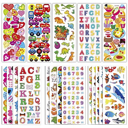 - [Stickers for Kids]: Ignite your child's imagination with our value pack of stickers for kids, offering over 500 pieces across 20 sheets. From letters and numbers to animals and dinosaurs, these cute stickers cater to every kid's interests, providing hours of creative fun and entertainment.