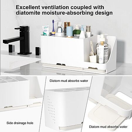JUMEIHUI Bathroom Countertop Water Absorbent Organizer w/ 8 Slots (White) $7.99 + Free Shipping w/ Prime or on $35+
