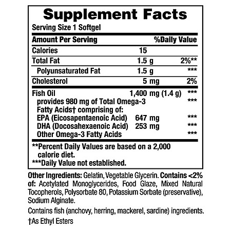 [DEAL UPCOMING] Nature's Bounty Fish Oil 1400 mg, 130 Coated Softgels $24.99 - Costco