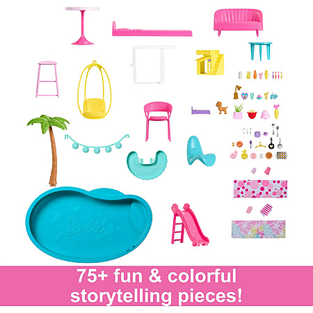 Barbie Dreamhouse, 75+ Pieces, Pool Party Doll House with 3 Story Slide for $137.99 - $5 off $25