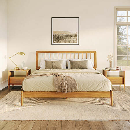 Walker Edison Cama Mid-Century Modern Solid Wood Spindle Bedframe: Caramel $139, Black $141 + Free Shipping