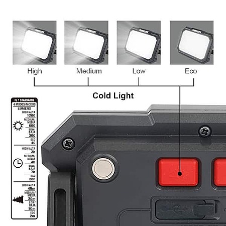 • 7 modes: white light high, white light med, white light low, white light eco, warm light high , warm light med, warm light low