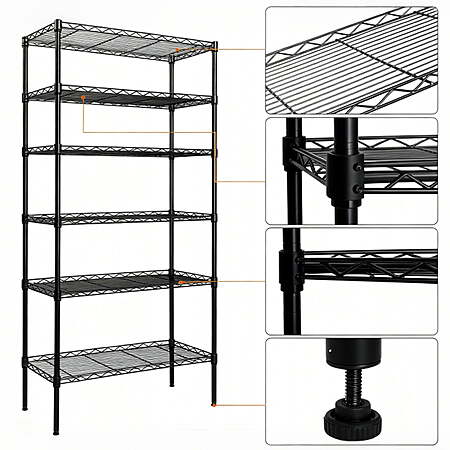 | Product Description: | ✅Ktaxon racks near, organizing's a cheer! Introduction: This black metal shelving unit is practical and stylish, making it an ideal choice for any home. Made of iron, it is durable and has a strong load-bearing capacity. The five-layer shelf structure provides ample storage space for a variety of items, whether it is kitchen utensils in the storage room, books in the study, or daily necessities in the living room. The unique design of freely adjustable shelf spacing allows you to customize the shelving unit according to the size of the items. Whether you have a tall vase or a small box, you can easily adjust the number of layers to make it fit perfectly. It measures 29.13x13.39x59.06inch, which can be easily placed in different locations in the home without taking up too much space. Features: -Durable iron material: ensure long-term use. -Five-layer design: provide ample storage space. -Adjustable shelf spacing: can be customized according to the size of different items. -Black beauty: add a modern touch to home decoration. -Wheel-free structure: stable placement. -Ideal size: suitable for various home spaces. Specifications: 1. Material: Carbon Steel & PP(Accessory) 2. Color: Black 3. Dimensions: (29.13 x 13.39 x 59.06)" / (74 x 34 x 150)cm (L x W x H) 4. Tier Quantity: 5 Tiers 5. Weight: 254.68oz / 7.22kg 6. Weight Capacity: 551 lbs / 250 kg Package Includes: 5 x Shelves 4 x Top Tubes 4 x Middle Tubes 4 x Bottom Tubes 42 x Clamping Piece 1 x Installation Instruction WARM PROMPT: Please confirm the product size before purchasing, to make sure the size of our product is in line with your requirements! After-sale Service: Since the satisfaction of customer is always our primary concern,so if you have any problem when using this product,please feel free to contact us via email,we're always happy to help! If you need other sizes, please click the link below to purchase: 5 Tier Layer 59"x21"x11.5" Storage Rack, Black ✅【Strong Weight Capacity】The heavy-duty steel bakers rack increase the load-bearing area to provide you with reliable load-bearing capacity. Each layer of shelving can hold up to 110 lbs, with a total max weight of 550 lbs ✅【Adjustable Height】Enjoy a completely customizable storage shelf unit. Kitchen shelves comes with easy adjustable clips to secure and stabilize each shelf. The storage rack is perfect for garage, kitchen, pantry, and more. ✅【No Tool Required】The installation of garage storage shelves is very convenient and fast.You can assemble a space saving shelving units and storage in less than 25 minutes. ✅【Remium Materials】Made from robust carbon steel, these wire shelves are engineered for superior strength and durability. With a 20% higher density compared to standard metal shelves, they can bear more weight. ✅【Widely Applicable】The 5-tier utility shelf is suitable for various spaces, such as storage rooms, closets, warehouses, basements, living rooms, and offices. Equipped with adjustable clips for secure and stable placement. Ideal for efficient storage in any setting. |