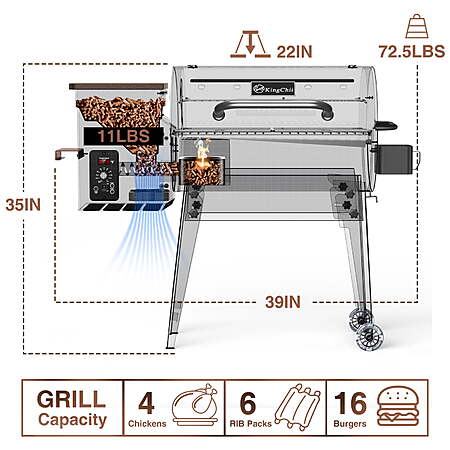 | Product Description: | A wood pellet grill can fit in most gardens, patios, balconies, and decks with ease. Get precision cooking with digital temperature controls that auto ignites the grill. The automated electric feed system maintains the heat for you and produces the optimal amount of smoke. Grills are fueled by 100% all-natural hardwood pellets that infuse amazing wood-fired flavor into everything you cook. It's the perfect grill to bring anywhere, from picnics to tailgating. Enjoy the food with your family now! ▶KEY FEATURES: 【PID Intelligent Temperature Control Technology】 PID technology allows the grill to maintain a stable temperature throughout the grilling process, adapting to the cooking needs of different ingredients.The temperature range is 180-420°F. 【Wood Pellet Grill】 Gives your grilled food a wood-smoked flavor with a mellow, delicious taste.With D2 feeding technology and liftable straight hopper, it not only saves space, but also can store more wood pellets and ensure the burning time. 【Multifunctional 8-IN-1】 Outdoor BBQ/Bake/Roast/Braise/Smoke/Grill/Sear/Char-grill.Perfect for family and friends gathering, outdoor camping. Meet the needs of multiple people barbecue, party anytime, anywhere in the courtyard. 【Easy to Move and Store】 Equipped with wheels to move the grill quickly and easily. When you are not using it, the 15-degree folding leg design increases stability and can be placed in the trunk of the car for picnics and camping. 【Reasonable Partition / Easy to Clean】 Divided into storage area and grill area, more convenient to use. At the same time, equipped with removable support frame, easy to clean. ▶ SPECIFICATIONS: Brand: KingChii Model Name: HWPG 456B-WR Power Source: Electric Fuel Type:Wood Pellet Material: Metal Color: Brown Pruduct Weight:72 pounds Item Dimensions (L x W x H): 36.7 x 18.3 x 35.4 inches ▶ PACKAGE INCLUDES: 1 x Wood Pellet Smoker & Grill 1 x Hardware List During this initial period, it's crucial to follow the correct shutdown procedure to ensure proper operation. Here are the steps: 1. Do not immediately turn off the grill switch or set it to OFF. 2. First, move the dial to the "Shut Down Cycle" position, and allow the remaining pellets to burn out completely. 3. Once the fan stops operating, set the switch to the OFF position, and then unplug the grill from the socket. |