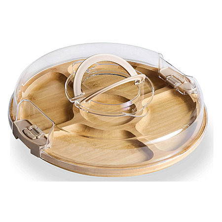 Model: Cook With Color Round Bamboo Cutting Board with Locking Lid, Dual-Function Charcuterie Board & Serving Board
