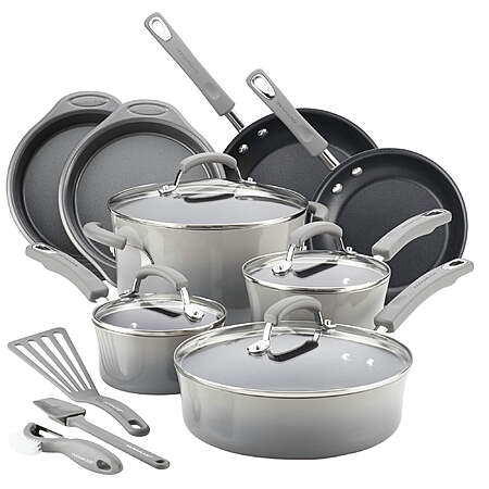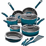 | Product Description: | Jumpstart your home cooking in style with the Rachael Ray Classic Brights Hard Enamel Nonstick Cookware 15-Piece Set that adds even more flair to the kitchen with sturdy bakeware and clever kitchen tools. From saucepans and skillets to a large stockpot for one of Rachael Ray’s delish stoups, to kitchen tools and a pair of cake pans, this versatile cookware set makes it easy to whip up your favorite dishes. The cookware and bakeware features the quality design and construction expected from Rachael Ray for fast, efficient cooking when you want and need it most. Long-lasting nonstick on the cookware and bakeware makes food release and cleaning up easy. The colorful cookware and bakeware exteriors provide a pop of kitchen personality, and match the tools and the grippy silicone handles on the pots and pans. Rachael Ray knows how to make cooking fun, easy and colorful, for great food and good times. Rachael Ray Classic Brights Hard Enamel Nonstick Pots and Pans/Cookware 15-Piece Set includes the right kitchenware ingredients to help make your cooking and Rach’s recipes even more delish. Rachael Ray 15-Piece Nonstick Pots and Pans Set/Cookware Set, Marine Blue: Cookware features sturdy construction for fast, efficient heating with reduced hot spots; durable enamel exteriors add bold color to the kitchen Long-lasting nonstick interior releases food quickly and cleans easily. Shatter-resistant glass lids seal in heat and moisture, while the cooking remains visible. Cookware and bakeware feature comfortable, grippy silicone-rubber handles for solid grasp. Cookware is oven safe to 350°F; bakeware is safe to 450°F. Lifetime Limited Warranty Set includes: 1 and 2-Quart Covered Saucepans, 3-Quart Covered Saute, 6-Quart Covered Stockpot, 8-1/2 and 10-Inch Skillets, Two 8-Inch Round Cake Pans, Mini Spoonula, Solid Turner, Veg-A-Peel |