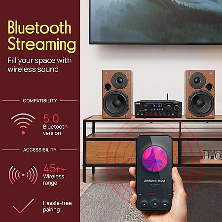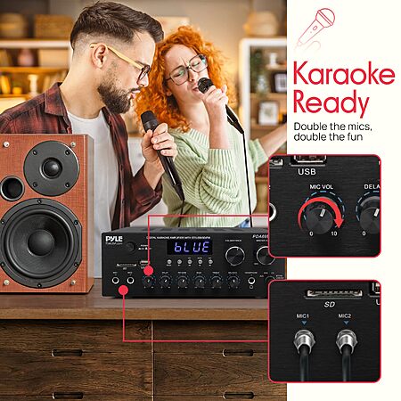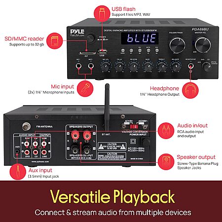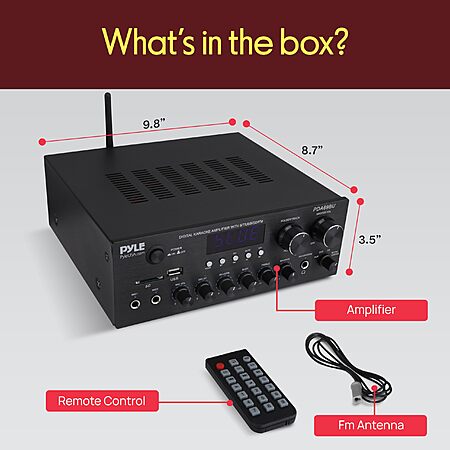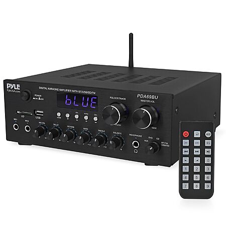 Model: Pyle Stereo Amplifier Audio Receiver with Remote Control - Bluetooth Streaming, MP3/USB/SD/FM Radio, 2.0 Channel HiFi Sound System with RCA/Aux Inputs, Microphone & Headphone Jacks, Adjustable Bass