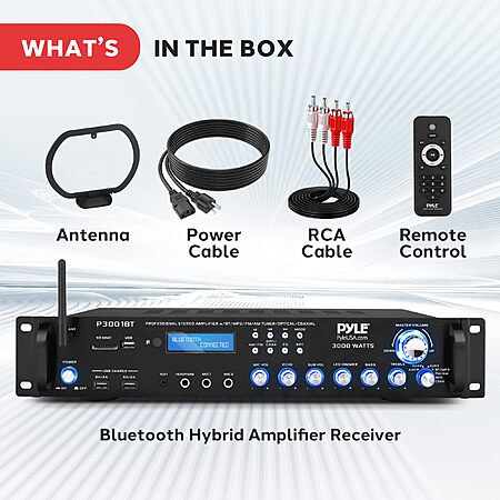 Pyle 3000W Multi-Channel Bluetooth Wireless Power Amplifier - Rack Mount - Stereo Receiver w/ FM Radio - USB/SD - Dual Mic w/ Echo - RCA - Headphone - LED Display $151.99