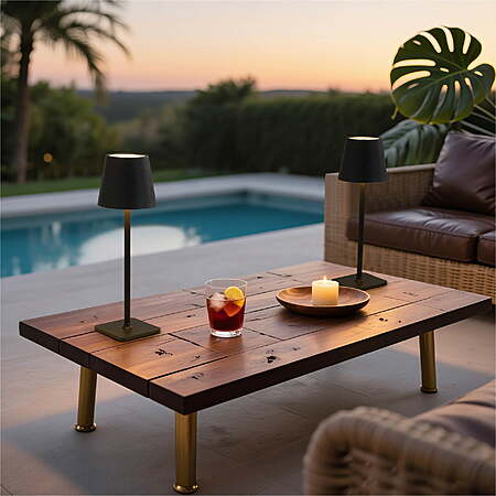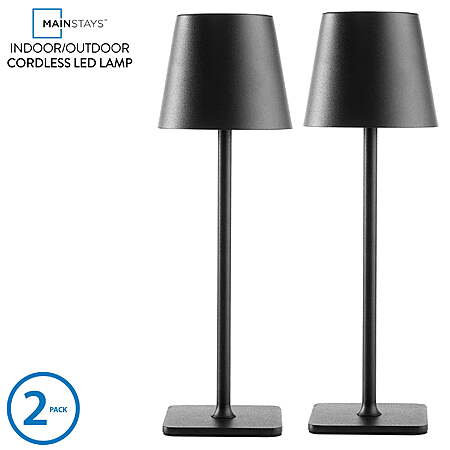 Mainstays 2 Pack Indoor/Outdoor Rechargeable 13" Table Lamp, Black $15