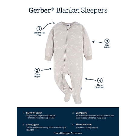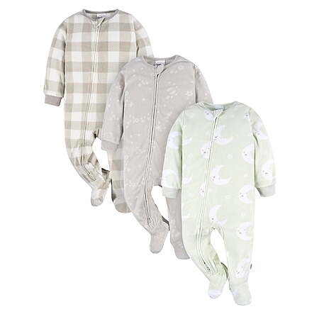 Walmart+: 3-Pack Gerber Baby & Toddlers' Nuetral Microfleece Blanket Sleeper PJs (Moons) $8.40 + Free S&H w/ Walmart+ or on $35+
