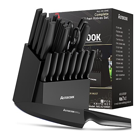 Astercook 20 Pieces Knife Set, Kitchen Knives Set with Built-in Sharpener, Healthy Anti-Rust Coating & German Stainless Steel Knife Block Sets, Dishwasher Safe Black $46.99