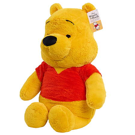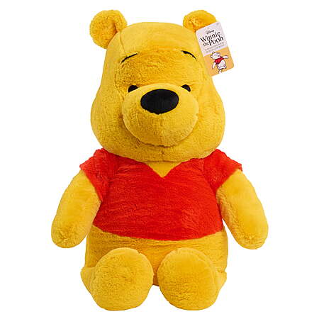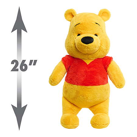 | Product Description: | Get ready for sweet-as-hunny fun with the Disney Winnie the Pooh Jumbo Plush doll. This supersized plushie stands 26 inches tall and features super-soft fabrics, embroidered and appliqued facial features, and his signature red T-shirt. Disney’s Winnie the Pooh is perfect for huge bear hugs, imaginative adventures, and may even make a silly dance partner. As a beloved character inspired by the stories of Disney’s Winnie the Pooh, this snuggly plushie is sure to have an extra-large place in any kid’s collection of stuffed animals and Disney toys. He’ll look fantastic sitting on a bed, lounging in a dorm room, or as a fun photo prop at parties. For the biggest hugs, add other jumbo plushies including Winnie the Pooh, Eeyore, Stitch, and Snoopy. They make great birthday gifts, holiday presents, and anytime surprise toys for kids ages 2 and up. Includes: Disney’s Winnie the Pooh plush toy. Giant Disney Plushie: Made of super-soft fabrics, this 26-inch Winnie the Pooh stuffed toy is just the friend for day-to-night snuggles, sweet-as-hunny dance marathons, and life-sized displays. Wonderful Craftsmanship: Winnie the Pooh is artfully sculpted with appliqued facial details and beautiful embroidery. Play or Display: This jumbo-sized plush toy is great for imaginative play, snuggly naptime, or as a fun addition to kid’s collection of stuffed animals and Disney toys. He looks as good as part of themed party décor as he does next to a special kid. A Big Idea: For the most imaginative tea parties, sleepovers, and anytime fun with family and friends, collect all of the Jumbo Plush dolls, including Winnie the Pooh, Snoopy, Stitch, and Eeyore. Each sold separately. Officially Licensed Plush Toys by Just Play: These stuffed toys make wonderful holiday gifts, birthday presents, and anytime surprises for collectors, kids, and the young at heart. Ages 2 years and up. |