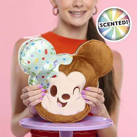 | Product Description: | The Disney Munchlings Squeeze-A-Munch Large Mint Dipped Ice Cream Sandwich Mickey Mouse plush toy is fun to squish and smells delish! This plush treat reimagines Disney Mickey Mouse as a mint-scented ice cream sandwich plushie—complete with chocolatey wafers, mint green icing, and rainbow sprinkles. Sized 10 inches tall, this Mickey Mouse plushie is sculpted from irresistibly soft materials and mixed, textured fabrics with embroidered and printed details. Disney Munchlings kids’ toys are soft and cuddly enough for infants, make unique surprises for collectors, and are deliciously fun for all fans of Disney toys. They make snuggly additions to kids’ beds, dorm rooms, or party décor. For the best sugar rush, collect all 6 Disney Munchlings Squeeze-A-Munch large plush characters, including Disney and Pixar Mickey Mouse, Minnie Mouse, Winnie the Pooh, Stitch, Ursula, and Alien (each sold separately). Ages 0+ Includes: 1 Disney Munchlings Mickey Mouse plush toy. Cuteness at Large: The Disney Munchlings Squeeze-A-Munch Large Mint Dipped Ice Cream Sandwich Mickey Mouse scented plush toy is fun to squish and smell delish! Delectable and Collectible: Munchlings collectible kids’ toys combine sweet desserts and beloved characters from Disney and Pixar—for an adorable fusion of ultra-soft plush treats and familiar Disney friends. A Sweet Treat for Everyone: Disney Mickey Mouse is reimagined as a 10-inch-tall, mint-scented ice cream sandwich plushie, complete with mint green icing, chocolatey plush wafers, and rainbow sprinkles. Ready to Snuggle: This cuddly Mickey Mouse dessert plushie is sculpted from super soft, green, brown, and white textured mixed fabrics with embroidered and printed details. Crave the Cuteness: For a smorgasbord of dessert fun, add all 6 Disney Munchlings Squeeze-A-Munch large, scented plush characters to any kids’ collection of stuffed animals and plushies. A Sweet Treat for Everyone: Officially-licensed Disney Munchlings Squeeze-A-Munch plushies are soft and cuddly enough for infants, and make wonderful birthday or anytime surprises for Disney fans and kids of all ages. Ages 0 months and up. |