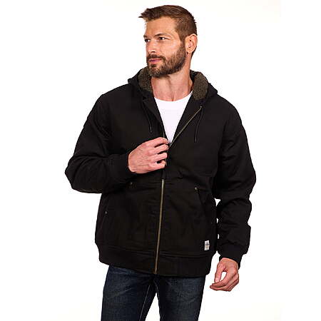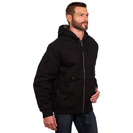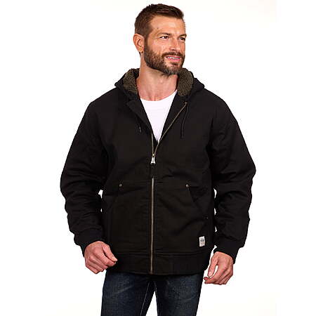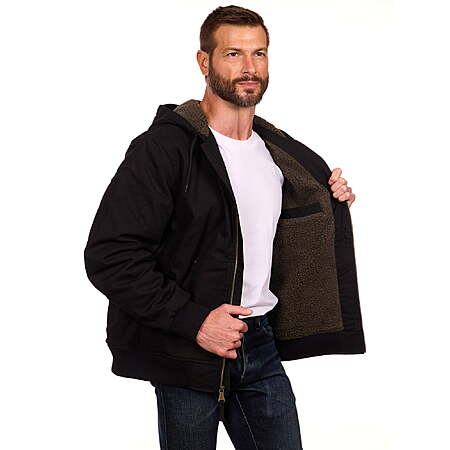 Bass Creek Outfitters Men's Duck Canvas Jacket with Sherpa lining is insulated and is a full zip hooded jacket. An ideal pick for warmth and protection during your workday. Perfect for any type of worker! Duck Jacket Sherpa Lined Outerwear