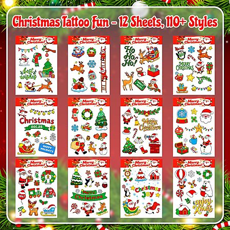 12-Sheets PARTYWIND 110+ Styles Christmas Decorations Tattoos $3.49 + Free Shipping w/ Prime or on $35+
