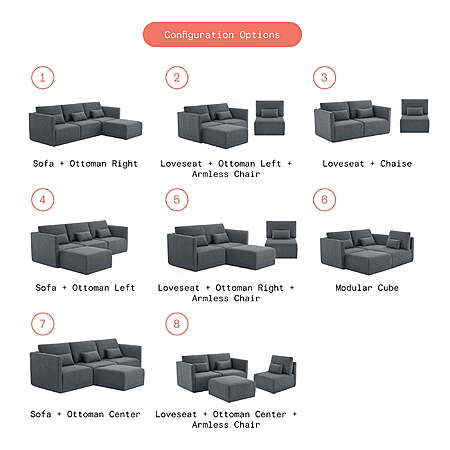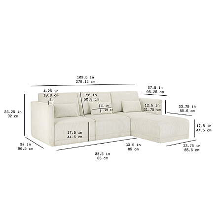 | Product Description: | The Beautiful Modular Sectional is an easy elegant and versatile furniture set, offering both comfort and style, making it a centerpiece in any living room. This four-piece set includes a left wedge, a right wedge, an armless chair, and an ottoman, creating the ideal sofa set to suit your space and preferences. Constructed with a solid wood frame, this sectional sofa exudes durability and stability. The wood frame ensures longevity, providing a sturdy foundation for years of relaxation and enjoyment. The seat of the sectional sofa features sinuous springs, which provide excellent support and comfort. These springs distribute weight evenly, preventing sagging and ensuring a resilient seating experience. To enhance both the comfort and style of the sectional sofa, three accent pillows are included. The stain-treated fabric upholstery adds a touch of elegance and sophistication to this sectional sofa. The stain treatment provides protection against accidental spills and stains, making it easy to clean and maintain the pristine appearance of the sofa. Embrace the ultimate seating experience and transform your living room into a cozy haven with this versatile and inviting sectional sofa. Pair the Beautiful Modular Sectional with other items from the Beautiful by Drew Furniture collection to complete your living room (sold separately). Stain-treated gray fabric upholstery Loose, reversible back cushions Includes left wedge, armless chair, right wedge, ottoman and 3 small gray accent pillows Solid wood frame Sinuous spring seat support Assembly required Sofa Dimensions: 109.5 in W x 38 in D x 36.25 in H Ottoman Dimensions: 33.75 in W x 33.75 in D x 17.5 in H Box 1 Dimensions: 38.8 in x 34.8 in x 25.5 in Box 2 Dimensions: 38.8 in x 34.8 in x 25.5 in Box 3 Dimensions: 34.8 in x 34.8 in x 22.5 in Box 4 Dimensions: 34.5 in x 34.5 in x 17.5 in Model#s: LS-BT-003, LS-BT-004, LS-BT-005, LS-BT-006 / LS-BT-011, LS-BT-012, LS-BT-013, LS-BT-014 |