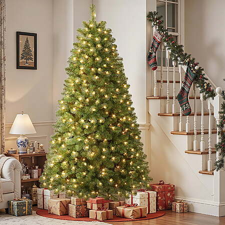 Alupssuc 6.5ft Pre-Lit Premium Artificial Hinged Christmas Tree w/ Warm White Lights, Perfect Choice for Xmas Decoration $65.99