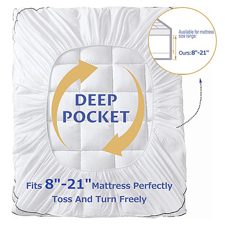 - Secure Fit: A stretchable knitted skirt and no-slip back design ensure the topper securely fits mattress depths from 8 to 21 inches, staying in place even with movement.