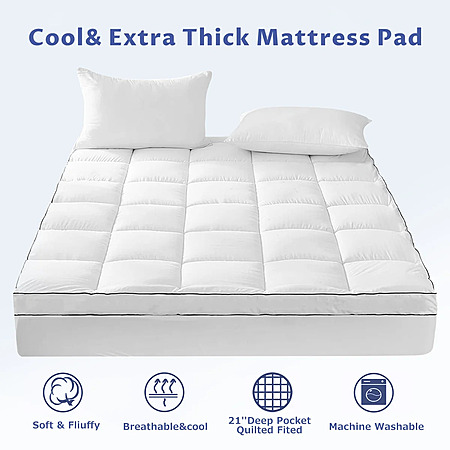 JUSTLET Extra Thick Queen Mattress Topper, Cooling Mattress Pad Cover, 2" Mattress Topper with 8-21 Inch Deep Pocket Soft Comfortable Breathable, White