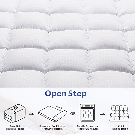 About this item- Supportive Comfort: This 2-inch thick Queen mattress topper features 3D snow down alternative overfilling for soft, fluffy, and stress-relieving support, ideal for various sleeping positions.