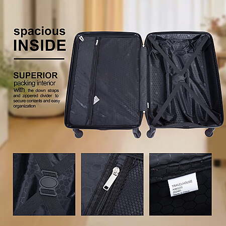 | Product Description: | Known for its innovative designs and commitment to quality, Travelhouse luggage is crafted from premium materials using the latest manufacturing techniques. offering a range of stylish and functional luggage solutions for discerning travelers. Since its inception, Travelhouse has been committed to combining cutting-edge design with unparalleled durability, This ensures that each piece is lightweight, strong, and able to withstand the rigors of airport handling and constant travel. Whether it's a weekend getaway or a cross-continent adventure, Travelhouse luggage is designed to keep your belongings safe and secure while complementing your personal style. As you embark on your next adventure, let Travelhouse be your trusted companion, elevating your journey with style and convenience. Extra Details: 100% ABS hardshell materials, lightweight, durable 3-Step Telescoping Handle; 4 Quiet Spinner Wheels; TSA Combination Lock Top and Side Handles; Organized Interior; Mesh Zip Pocket; Tie-down Straps HOW DO I RESET THE COMBINATION LOCK 1.The lock is set to 0-0-0 at the factory. 2.Locate the reset button adjacent to the dials, push it and hold while you rotate the dials to your desired 3-digit code. 3.Release the reset button and your code is now set. 4.Scramble the dials and test your new code to be sure the correct one is set. 【High Quality Luggage Set】Made of 100% ABS material,this texture is extremely impact-resistant,scratch-resistant,and fairly light in weight, This set weighs only 27.56lb. Best choice for long-term travels and business trips. 【Top material for every part】4x Silent & Smooth Multi-directional Spinner Wheels Can accept a height of 1 meter and a weight of 40kg without breakage;TPR soft handle with straight handle makes you more comfortable when you need to carry; Aluminum pull rod can be adjusted for three lengths. 【Elegant + Practical Design】Features textured finish to prevent against scratches, keeping cases beautiful after a trip; Combination lock +TSA customs lock, better protection of luggage security. The business card is on the outside of the case. You can even hang the Handle Bag on the 4 placement feet. 【Organized & Secure Interior】Interior mesh zip pocket and elasticated,Squared full-capacity design, Warranty:Two Years Warranty. Product incloud: 20in(Comply with carry-on size restrictions for domestic travel); 24&28in suitcase (provide more space). |