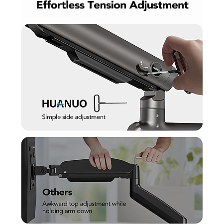 Model: HUANUO Heavy Duty Monitor Arm for Ultrawide Screens up to 49", Holds 40 lbs, Aluminum Ultrawide Single Monitor Stand with 29.1" Max Height, Fully Adjustable Desk Mount, Max VESA 100x100mm