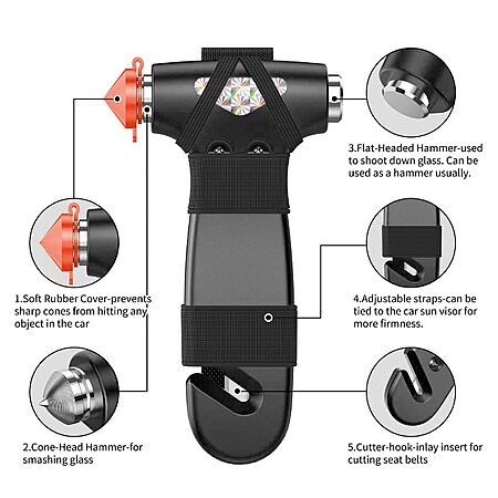 2-Pack 3-in-1 Emergency Car Safety Hammers with Window Breaker & Seat Belt Cutter (Black) $4.99 + Free Shipping w/ Prime or on $35+