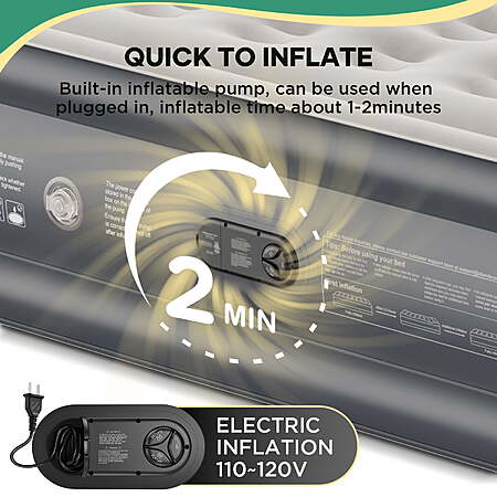 - Quick Inflation with Built-in Pump : The Ophanie queen air mattress features an advanced built-in pump that inflates or deflates the bed in just 3-4 minutes when plugged into a power source, ensuring a hassle-free and convenient setup.