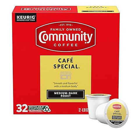 [S&S, AC] $9.97: 32-Count Community Coffee Medium-Dark Roast Single Serve Keurig K-Cup Pods (Café Special) at Amazon (31.2¢ each)