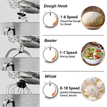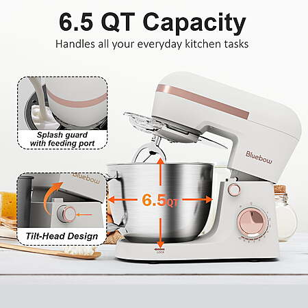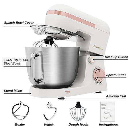 $79.99*:Bluebow 6.5QT Stand Mixer, 10+P Speeds Powerful Electric Kitchen Mixer with Dough Hook, Beater, Whisk, Food Mixer for Baking, Cooking, White