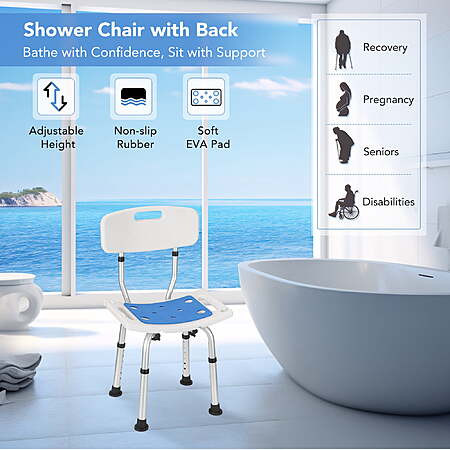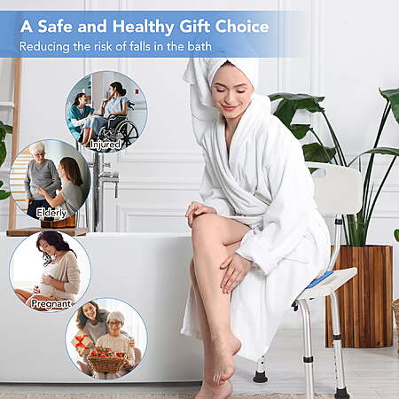 | Product Description: | Naipo shower chair is ideal for the elderly, seniors, adults, disabled, pregnant women or those who have trouble bending, stretching, have arthritis, recent knee or hip surgery, or are rehabilitating. It helps reduce the stress and unease that arises from a fear of falling while in the tub or shower. Specification: Brand: Naipo Easy to assemble in minutes 6 Height Setting from 26''-31'' Seat Dimension: 16"L x 10.4"W Soft Padded Bath Safety Seat Sturdy, Secure & Durable: Naipo shower chair supports up to 300 pounds with a heavy-duty anodized aluminum frame and thickened seat and backrest. 1.4mm thick aluminum tubes and cross-bracing design ensure durability. Perfect for bariatric, elderly, seniors, adults, disabled, and pregnant women. Comfortable Padded Shower Stool: Our bathroom bench Detachable padded bath seat for easy cleaning. Soft EVA padded seat and backrest provide extra support and slip prevention. Anti-slip rubber feet with drainage holes ensure safety and allow water to drain. Adjustable Heights for Your Needs: Naipo's bath seat comes with a simple push-button mechanism that allows height adjustment from 26" to 31". Adjust the height of the chair to suit your needs. Lightweight and corrosion resistant shower transfer stool. Provides great support for those with chronic fatigue or balance problems. Fits perfectly in smaller bathrooms. Tool-Free Assembly: Surprise your loved ones with this ready-to-use shower chair for inside tub. Designed for easy tool-free assembly in just 3 minutes. Simply tighten the screw, and enjoy a relaxing and pleasant shower experience. No hassle, no stress, just pure comfort. Ideal Gift: Surprise your loved ones with this sturdy and comfortable adjustable shower chair. Perfect for anyone who needs support and wants a relaxing bath experience. |