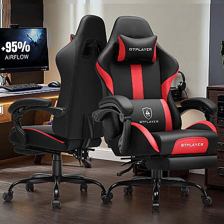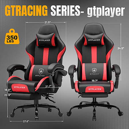 | Product Description: | GTPLAYER ProMotion PU Leather Gaming Chair with Footrest – Ultimate Comfort & Performance The GTPLAYER ProMotion Gaming Chair with Footrest in Black seamlessly blends luxury, durability, and ergonomic support, making it an essential addition for gamers, professionals, and anyone looking to upgrade their workspace or gaming setup. Crafted with high-quality PU leather, this chair offers a sleek, refined look while being water-resistant, easy to clean, and highly durable, ensuring a premium experience for years to come. The soft-touch surface mimics genuine leather, delivering a comfortable yet sophisticated feel. Designed with user comfort in mind, the chair features a high-density memory foam seat cushion that conforms to your body, providing excellent pressure relief during long hours of use. The adjustable lumbar support and high-back design help maintain proper posture, reducing strain on your back and spine. The linkage armrests move naturally with your reclining position, offering continuous support, while the integrated footrest allows you to fully relax when needed. Built with a reinforced metal frame, the chair supports up to 300 pounds, ensuring long-term stability and reliability. The 360-degree swivel base and smooth-rolling casters provide effortless mobility, while the reclining function allows you to adjust the backrest up to 150 degrees, making it perfect for gaming, working, or even resting. With its sleek black PU leather finish, modern contours, and meticulous craftsmanship, the GTPLAYER Gaming Chair enhances any home office or gaming setup with a premium, professional aesthetic. Whether you're working from home or conquering the gaming arena, this chair delivers the perfect balance of comfort, style, and performance. Premium PU Leather – Soft, durable, water-resistant, and easy to clean. High-Density Memory Foam – Comfortable, pressure-relieving seat cushion. Ergonomic Design – Adjustable lumbar support & linkage armrests. Reclining & Footrest – 150° recline and retractable footrest for relaxation. Sturdy & Stable – Metal frame supports 300 lbs with smooth 360° swivel casters. |