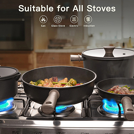 Astercook 18-Piece Pots and Pans Set, Black Titanium Induction Nonstick Cookware Set, Oven Safe to 480°F, Induction Compatible & Dishwasher Safe for $69.99