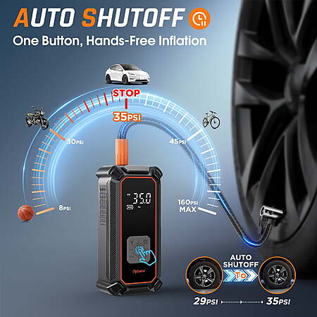 Model: Ophanie Cordless Portable Tire Inflator - 160 Psi Digital Pressure Gauge, Air Compressor for Car Tires with Automatic Shutoff, Emergency LED Light, Compact Automotive Pump
